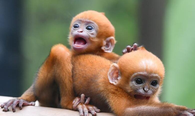 5月13日,广州长隆野生动物园成功繁育世界首例龙凤胎黑叶猴,正式迎接广大游客的光临,黑叶猴是国家一级保护动物,野生数量比熊猫还要少,因而被称为“猴界大熊猫”。一般雌猴每胎产一个宝宝,极少两个。