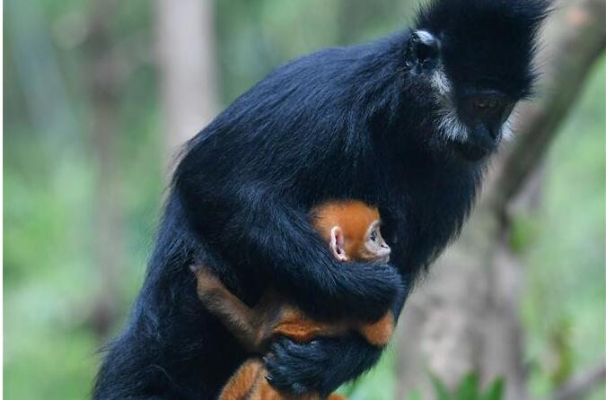 据介绍,刚出生的黑叶猴是金黄色,一周后变淡黄色,一个月后变灰,三两个月就跟雌猴一样颜色了。