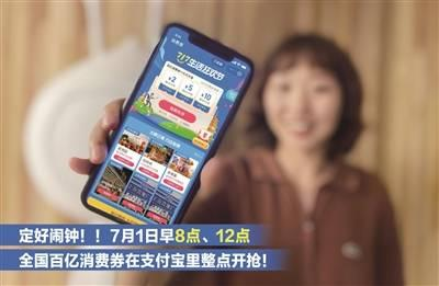 7月1日连续17天规模100亿的全国版消费劵正式发放。每天早上八点、中午12点,支付宝用户在支付宝上搜索“717”就可以领取,每次可以一键领取3张,分别是10-2,30-5,60-10,可以连续领取17天,当天领劵,当天使用。